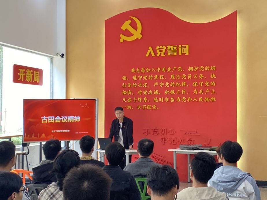 2022年10月20日,岩土工程研究生党支部在三化平台开展主题为“争做新青年,永远跟党走”的党日活动,活动共有五个环节:微党课、理论学习、观影《我和我的祖国》并谈论观后感、再问我心、重温入党誓词。
