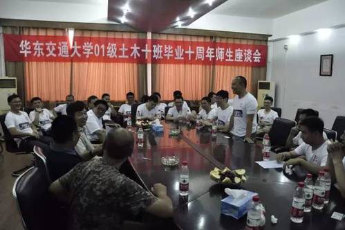 6月20日,388vip太阳集团01级土木十班校友返校举行行毕业十周年聚会,并于9栋会议室进行座谈会。校友总会秘书长尹建成,校对外联络处处长、校友工作办公室主任罗侃,388vip太阳集团党委副书记吴昌林,时任班级辅导员黄方及相关任课老师出席座谈会。