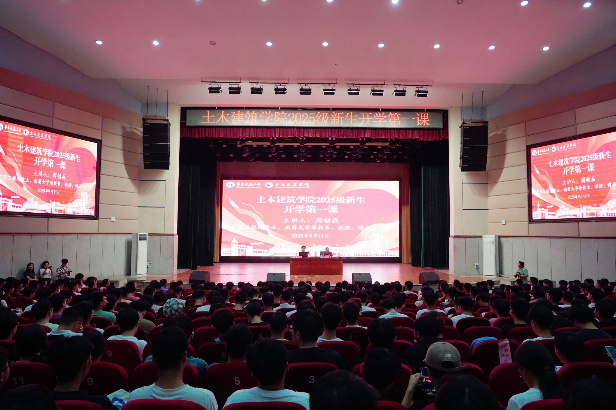 9月11日,中国工程院院士、南昌大学教授周创兵以“勤学习强体魄,立壮志成大才”为题,为土建学院2025级新生讲授“开学第一课”。校党委书记柳和生出席并主持。