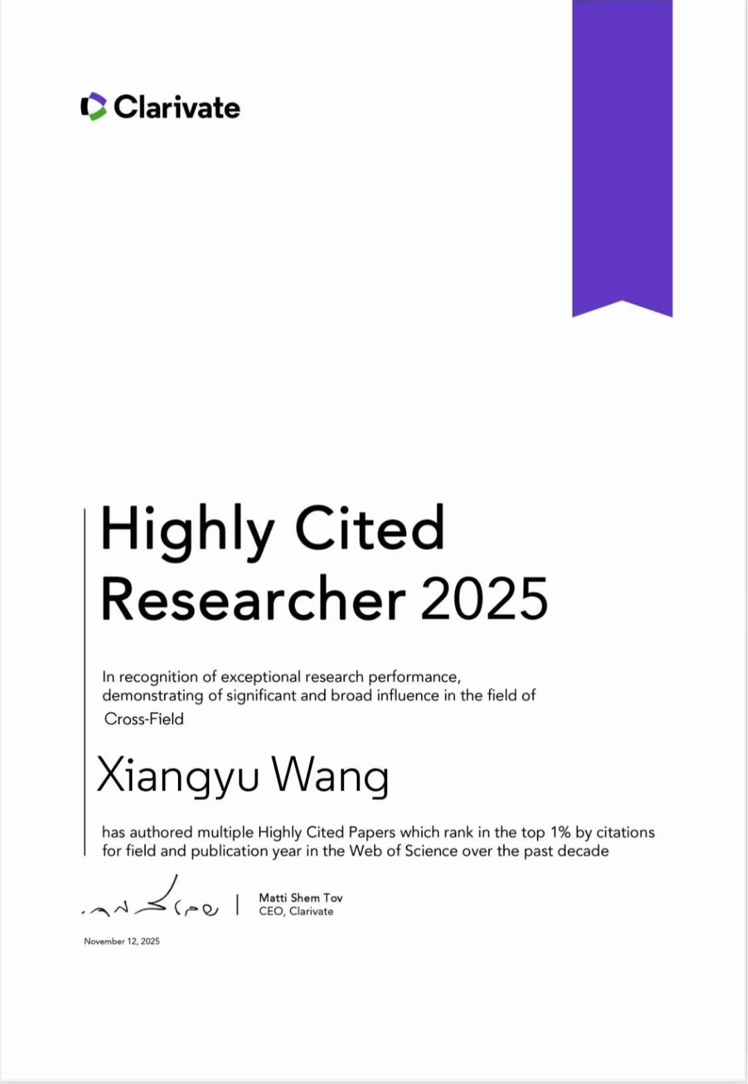 近日,全球领先的专业信息服务提供商科睿唯安(Clarivate)正式发布2025年度"全球高被引科学家"(Highly Cited Researchers 2025)名单。我院王翔宇教授凭借在相关研究领域的卓越学术影响力入选,这是国际学术界对其科研成果的高度认可,也是学院在高水平人才培养与学科建设领域取得的重要突破。
