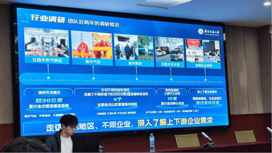吴俊楷结合实战经验,从PPT、商业计划书、路演现场三大维度拆解竞赛技巧,并同步分享团队核心项目——基于光纤传感与AI的天然气管网泄漏智能监测设备。该设备通过管道预埋光纤+分布式监测设备采集数据,构建温度信号数据库与智能辨识算法,适配多场景的同时提升定位精度与安全保障,核心优势突出。