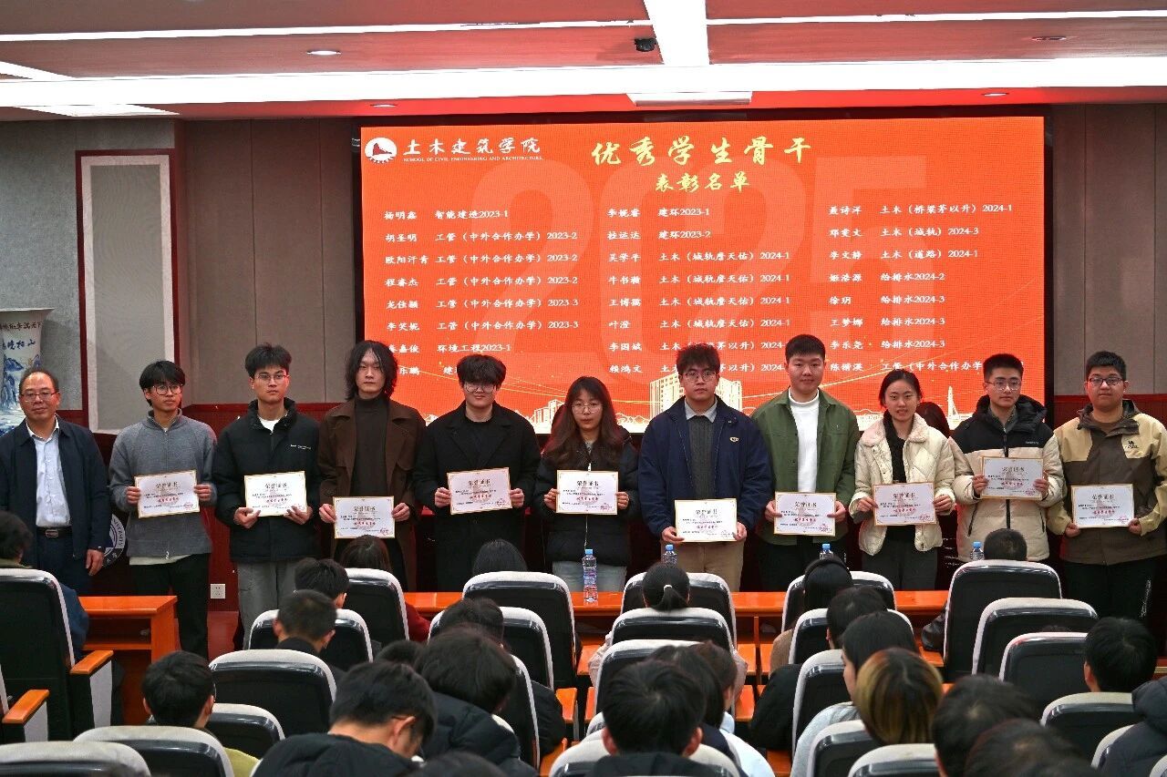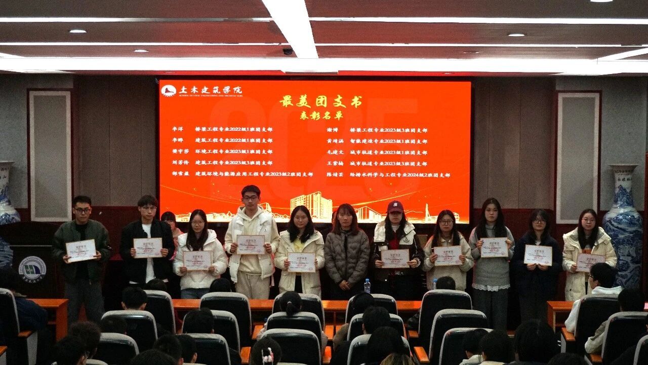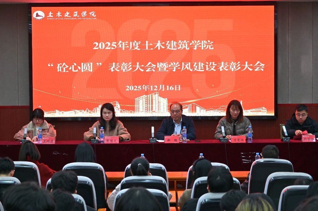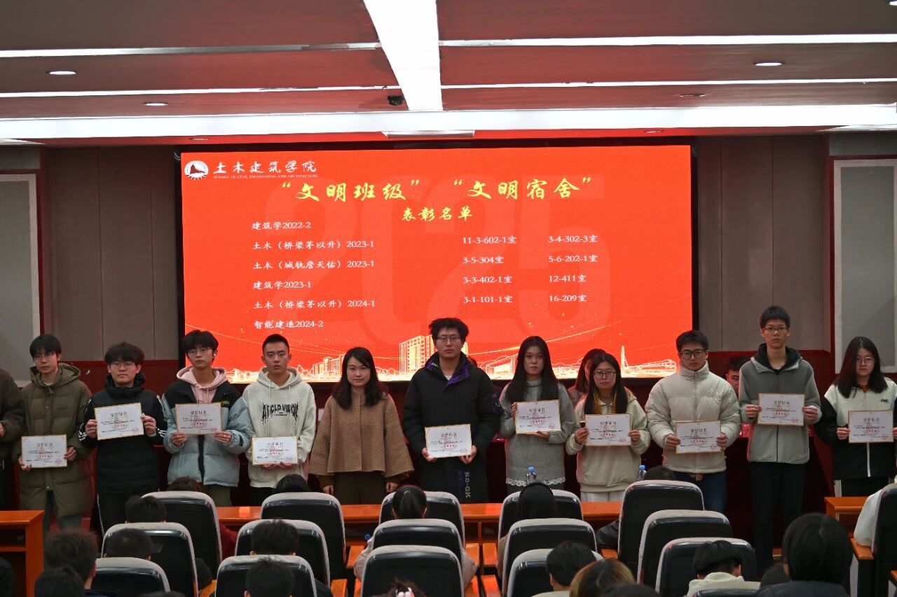 为表彰先进、树立典型,激励全体学生干部勇担使命、砥砺奋进,进一步推动学院学生工作高质量发展,12月16日晚,土建学院在土建楼200报告厅举行2025年度“砼心圆”先进集体和优秀个人表彰大会暨学风建设总结表彰会。院党委副书记郑轶、全体辅导员出席会议,学院团委与学生会、研分会全体成员、获奖学生和班级学生代表参会。表彰会由王梓霖、罗雨菲主持。