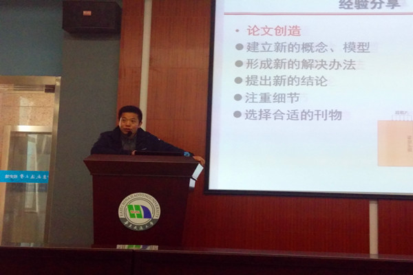 讲座中,徐长节教授结合自身丰富的科研经历和人生阅历,从个人学习和工作经历、主要创新成果、经验心得分享三个方面为青年教师进行了现场传授。针对青年教师如何做好科研,徐长节教授用谦逊的态度、朴实的语言对青年教师语重心长地说:“青年教师做科研,高水平学术论文最重要”、“上天入地,积极参与重大工程项目”、“选定研究方向,集中火力”、“合作共赢、规划报奖”、“补齐短板、全面发展”、“学术交流、内外兼修”、“培养学生、因材施教”、“直面挫折、愈挫愈勇”、“永怀感恩之心”。徐长节教授还特别讲到,他曾经也遇到过职称晋升、高层次人才计划申报失败的挫折,他用北宋文学巨匠苏轼“在贬谪中的顿悟,在苦难中的超越”来鼓励青年教师不要害怕失败,人生难免遭遇挫折和逆境,要从失败中总结教训,不忘初心,继续前进。