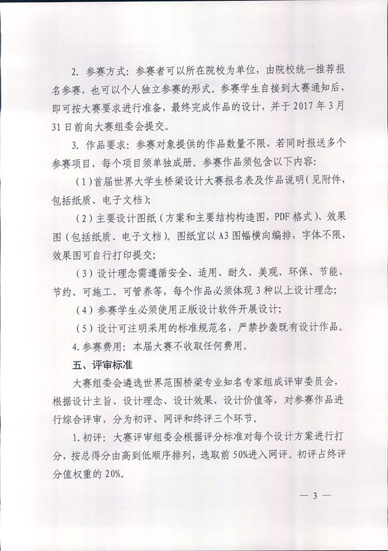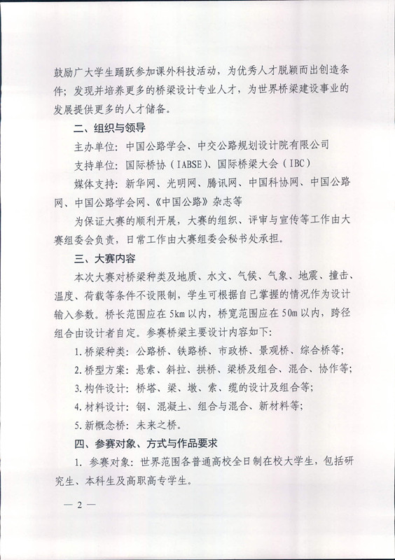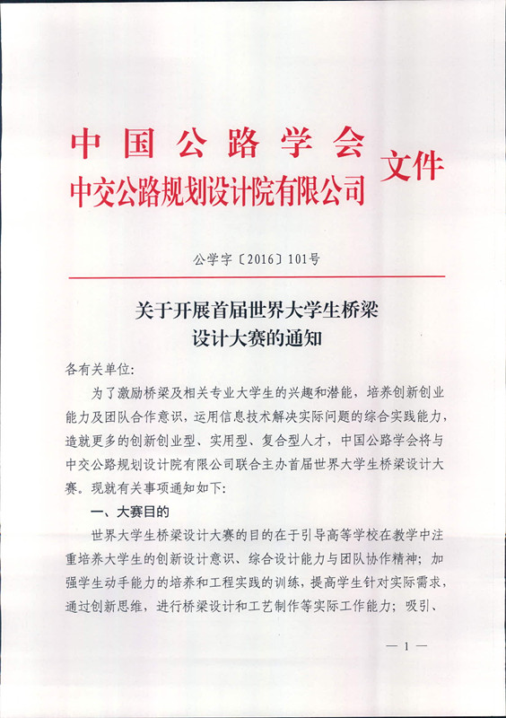 关于开展首届世界大学生桥梁设计大赛的通知
