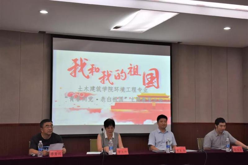 正逢祖国成立70周年,为树立同学们爱国情怀,上好新生开学第一课,9月12日下午,在土建200召开388vip太阳集团环境工程专业“青春向党•表白祖国”教育主题大会。本次会议由环境工程辅导员刘伟主持,388vip太阳集团党委书记李立玲、副书记龙良华、环境工程学科负责人鲁秀国、环境工程教研室张卫风应邀出席会议。