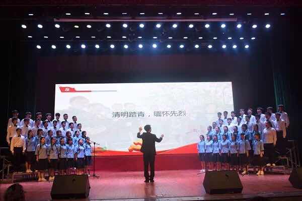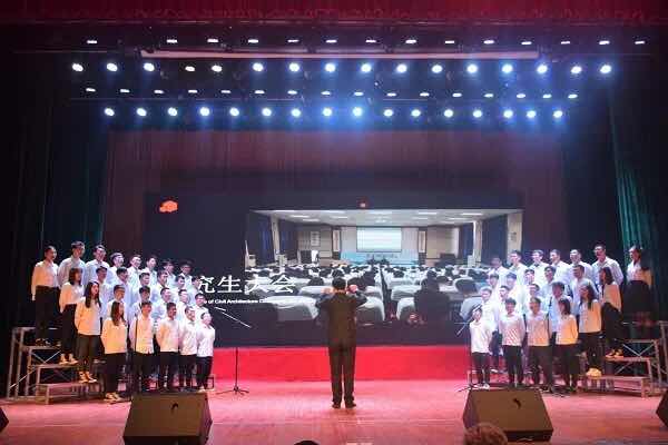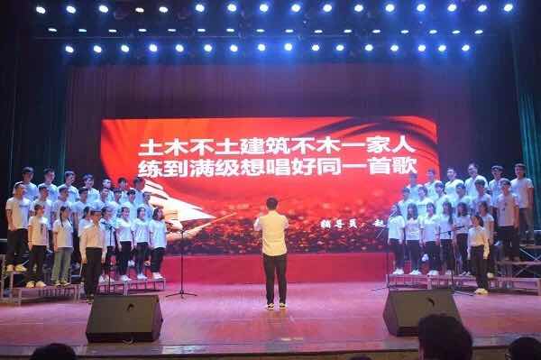最后,土建学院学生会带领全体师生合唱中国共青团团歌《光荣啊,中国共青团》。