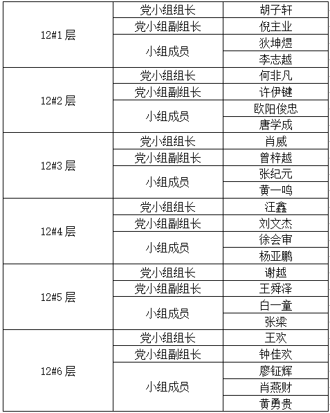 以“创建特色支部,营造温馨公寓,争做模范党员”为主题,建立学生宿舍楼栋党支部、楼层党小组。在2020年11月26日下午,由学生12栋楼栋党支部书记徐会审主持换届工作并宣布换届名单,学生12栋学生党员参加会议。