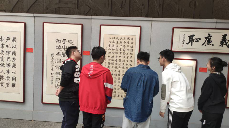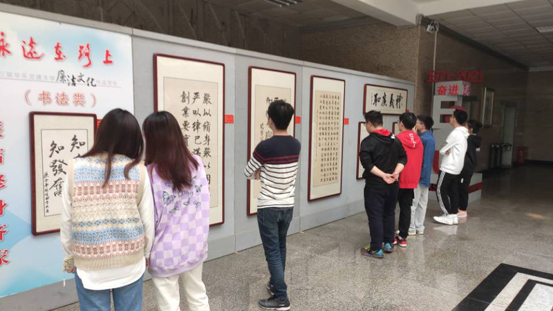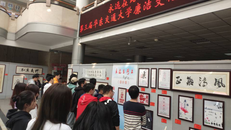 2020年11月5日,建工城轨党支部学生党支部全体学生党员在支部书记李丹的指导下参观了太阳集团廉洁文化作品展,在参观的过程中,大家积极的讨论各个作品之中对于廉洁的诠释手法,以及作品中蕴含的劝诫和警告意味的表达。