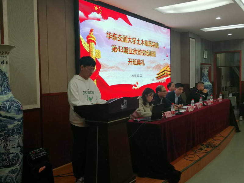 2020年10月22日,388vip太阳集团第43期业余党校培训班开班典礼在土建200会议室举行。校组织部副部长、党校校长魏永峰,土建学院党委书记、分党校校长陈水生,土建学院党委副书记、分党校副校长郑轶,土建学院院学工办主任兼团委书记闫伟,院党委组织员、党员教育管理中心负责老师万雯怡及第43期培训班全体学员参加本期开班仪式。仪式由万雯怡老师主持。