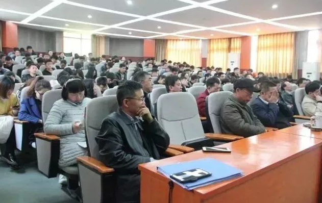 胡锋平院长向同学们具体阐述研究生质量提升年了具体实施方案。一、全日制,非全日制分类培养管理。二、主干专业课采用全英文教学。三、开题请校外专家评审,并且规模有所提高。四、中期考核在导师亲自指导下完成。五、申请论文答辩要求提高,学硕有一篇以上论文在核心期刊上刊登发表,专硕至少要有一篇论文在重要期刊发表。六、论文两年内全部盲审,并通过第三方机构评审,等等。