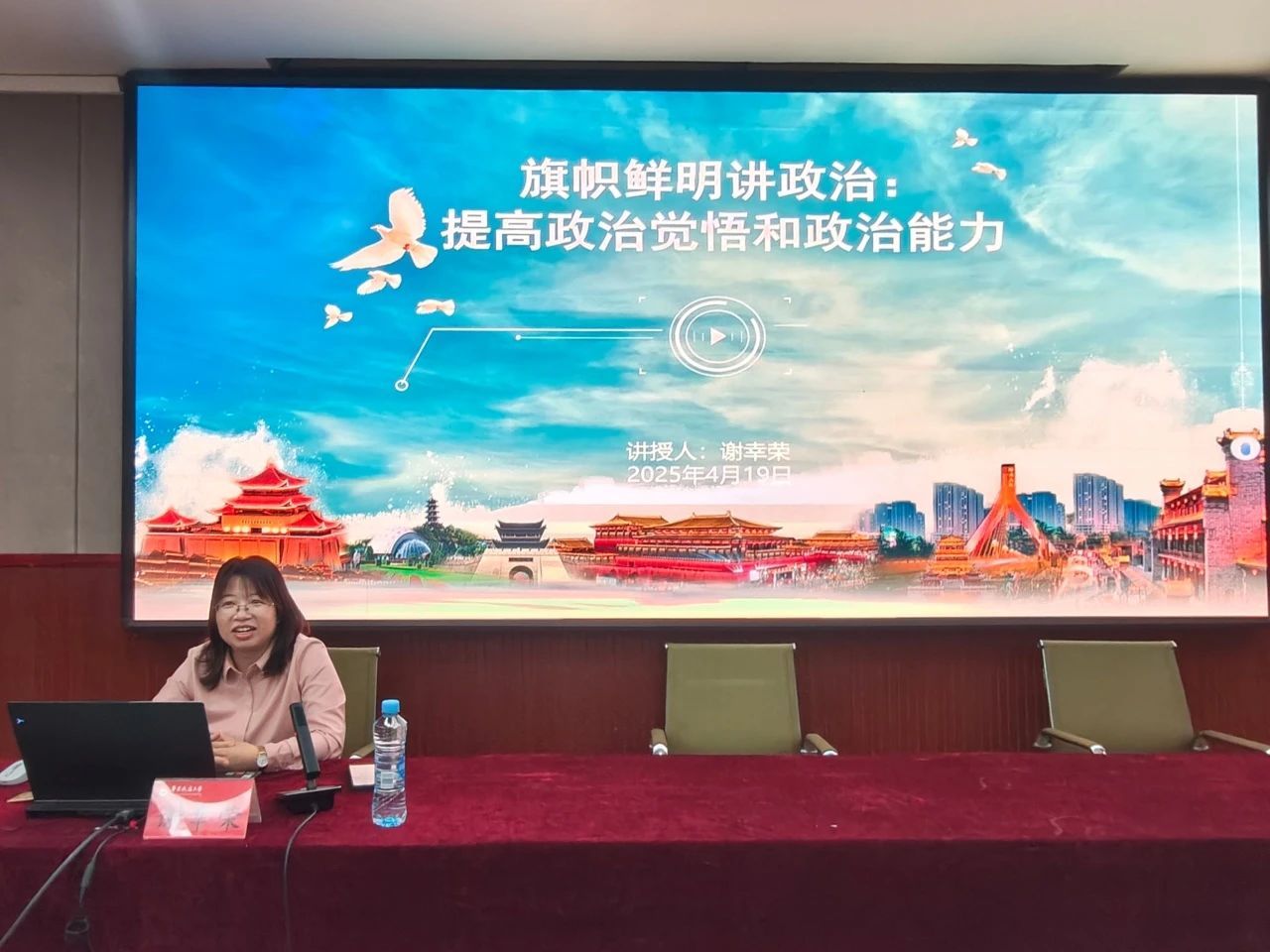 4月19日,理学院党委副书记谢幸荣为388vip太阳集团第九期发展对象暨第五十三期入党积极分子培训班讲授党课——《旗帜鲜明讲政治,提高政治觉悟和政治能力》。