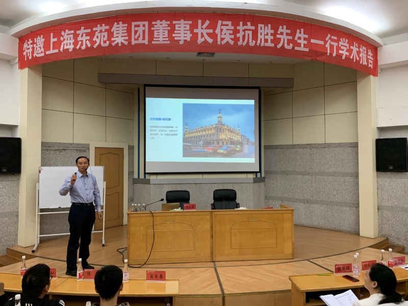 济济一堂,气氛热烈。11月4日下午,上海东苑房地产开发(集团)有限公司董事长侯抗胜先生、设计总监王玉托先生特邀在太阳集团8-110学术报告厅为我院师生作了两场题为《全球视野人才观与数字经济价值观》、《房地产开发项目案例实战分享》的学术报告。两场报告内容丰富、案例翔实、演讲鲜活,互动频繁,精彩不断,师生获益多多。