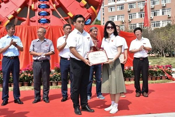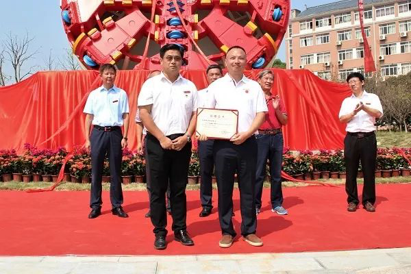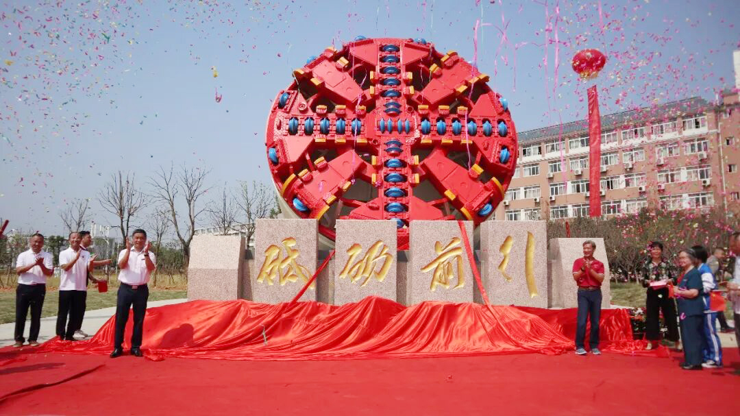 罗玉峰、张成、李相夫及李立玲为“砥砺前行”盾构机揭牌。据悉,这座盾构机曾转战诸多城邑,累地铁隧道共十六公里有余,此勋器已卸甲藏锋,复立于此,为我校相关专业师生深入了解盾构机原理及应用提供良好契机。它不仅承载了85级工业与民用建筑专业校友对母校的深切情意,同时也激励着我校师生在今后的学习和工作中不畏险阻、砥砺前行。