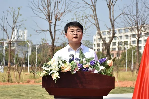 校友代表张成发言,洋溢着浓浓师生情谊,感谢母校的培养,祝愿母校越办越好。