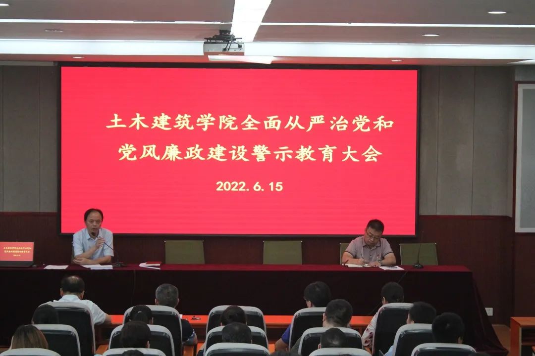 6月15日下午,388vip太阳集团党委召开2022年全面从严治党和党风廉政建设警示教育大会。校纪委副书记杨东明、全体教职工参加会议,会议由院党委书记陈水生主持。