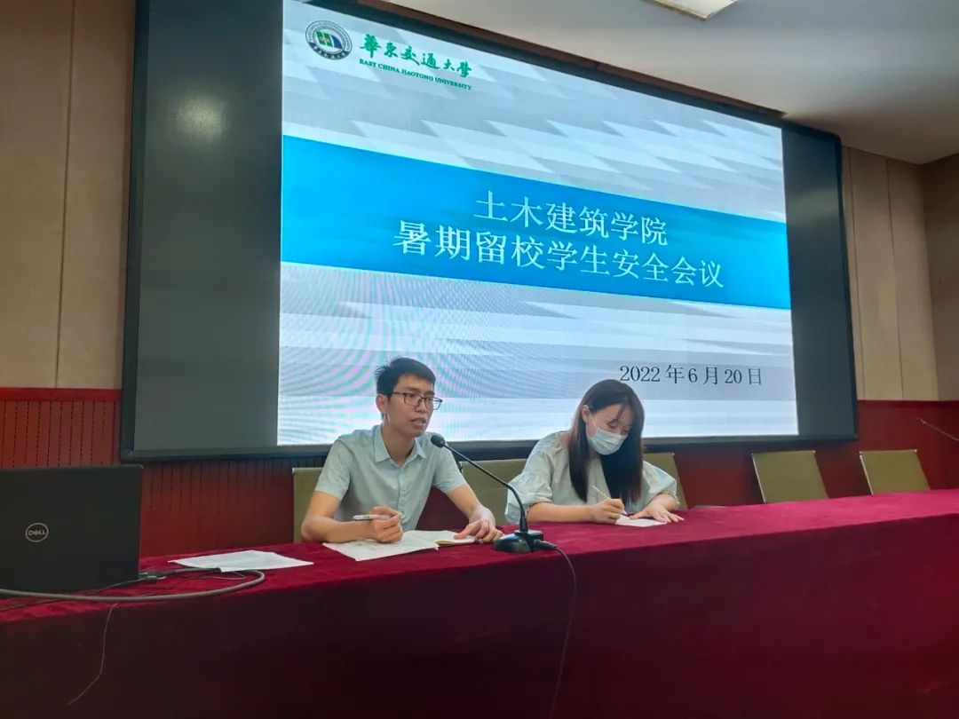 六月的夏天肆意且热烈,六月的风匆匆地将同学们带入了假期。安全是快乐假期的基础。为了让学生们度过一个多姿多彩、愉快充实的暑假并且以积极向上的姿态投入新的学年中,2022年6月20日,我院于土建楼200会议室召开暑期留校学生安全会议。党委副书记郑轶出席此次会议,团委书记万雯怡、学工办副主任毛丽素、相关辅导员及留校同学们参加了本次会议。