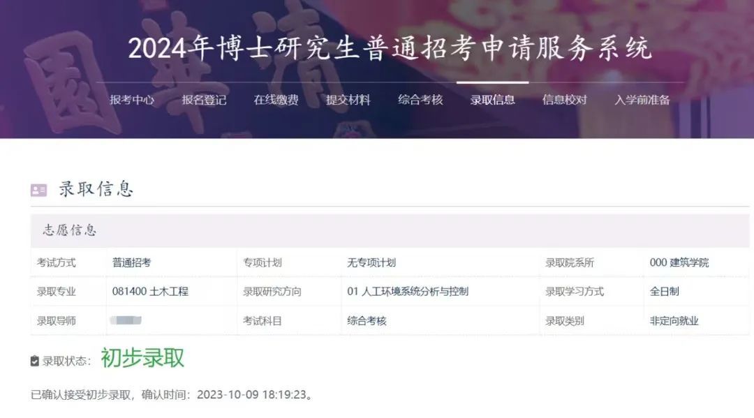 在得知自己成功录取清华时,谢越的朋友圈里多了这样一段话,“知道录取结果的那一刻,激动的心情是难以言喻的——记忆深刻感触颇多,是因为这次考试的过程经历了道道曲折,就像自己的求学道路一般经历了许多坎坷。止不住地默默流泪,是因为我认为自己从不曾放弃努力让自己变得更好;也是因为身边一直关爱的亲人,关心指导的老师以及支持帮助的朋友和同学。抬头仰望远方星空,是因为这对于我而言,是结局,亦是开始——是荣誉加冕的肯定,也是浩瀚征途的启航。”追溯谢越决定选择在清华大学攻读博士的契机,还是在考研时期。那时他没有考取理想中的高校进行深造,一度十分诅丧。经过导师的开导,谢越产生了继续努力学习、去985高校攻读博士的想法。最初谢越所确定的目标是哈尔滨工业大学,但是在参加2023年5月的赣江论坛时,有幸聆听了清华大学教授的报告,在麻老师的鼓励下,他抱着勇于尝试的态度报考了清华大学博士研究生。