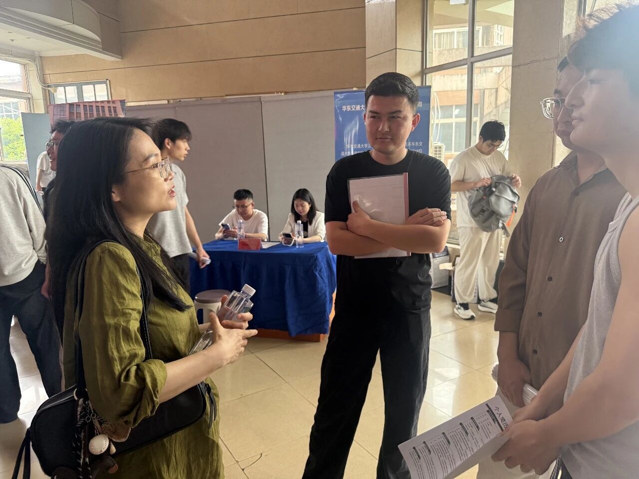 毕业生们手握简历,与企业代表交流沟通