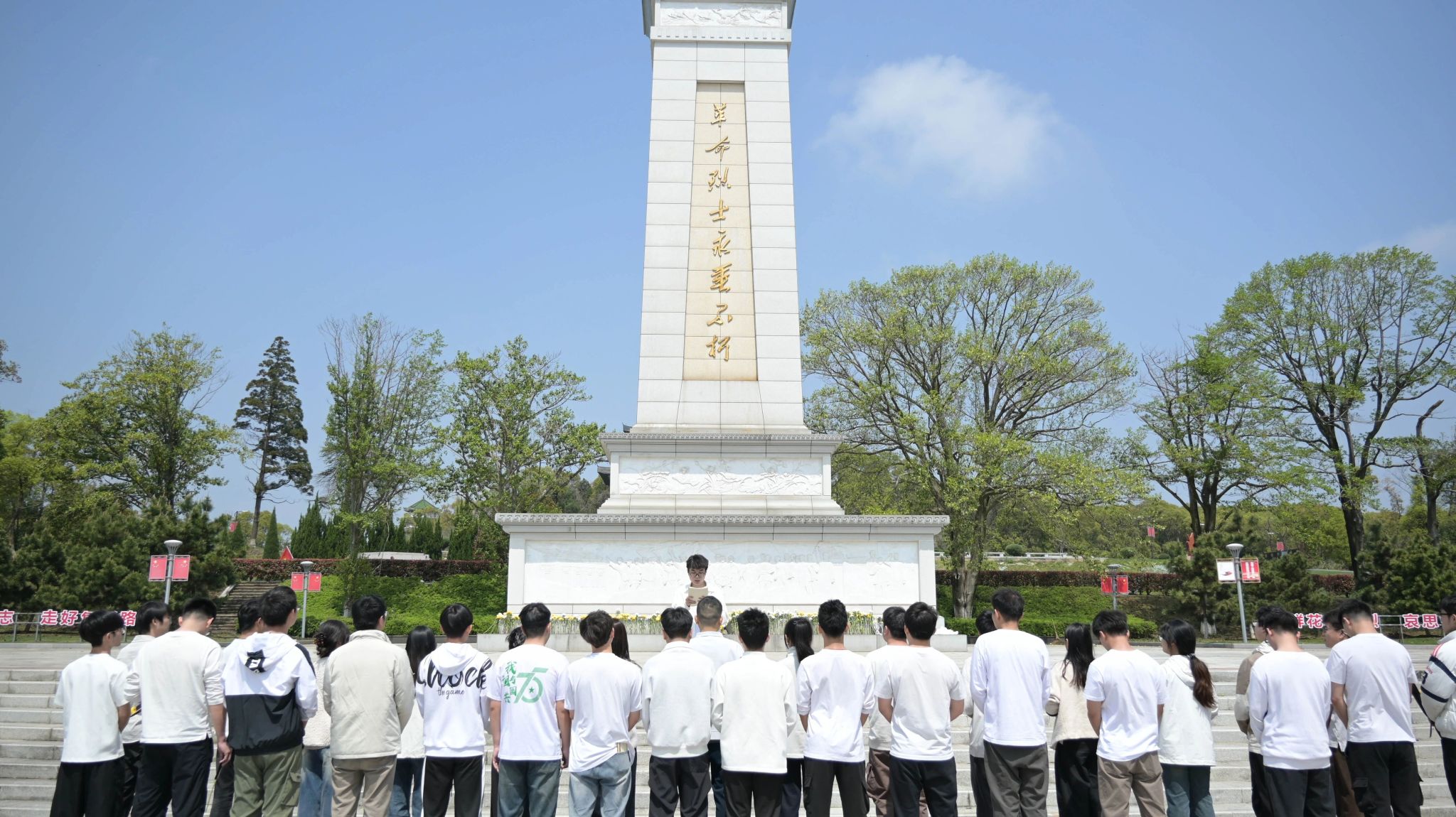全体师生肃立默哀,深切悼念为民族解放、国家安宁献身的革命烈士。